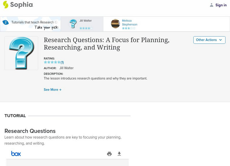Sophia: Research Questions: A Focus for Planning, Researching, and Writing