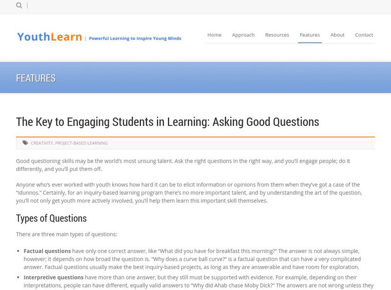 Youth Learn: The Key to Engaging Students in Learning: Asking Good Questions