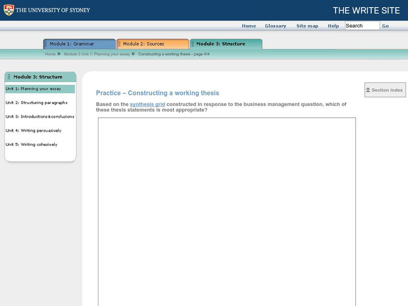 In this interactive lesson, students will refer to a synthesis grid to determine the "best" thesis to use when answering a business management question.