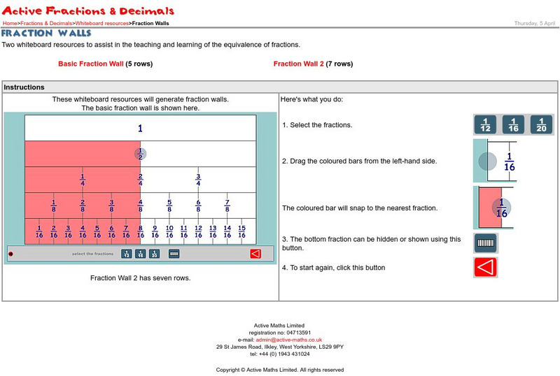 Two Fraction Wall interactive activities are an excellent resource for students to visualize equivalent fractions.