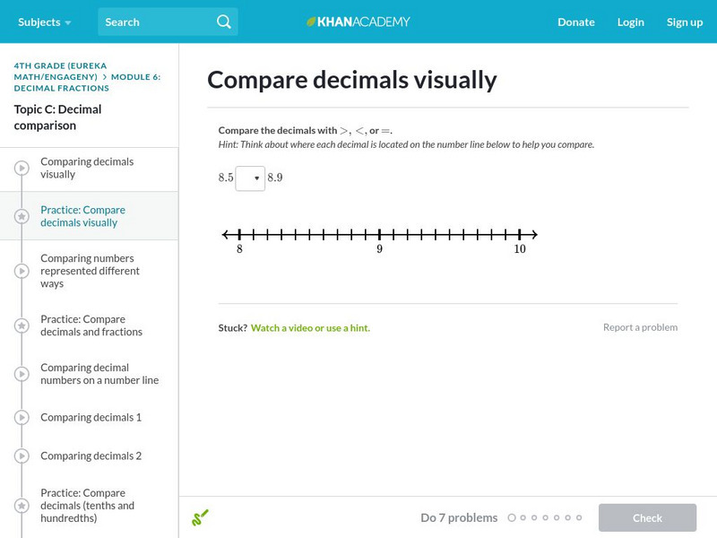 In this exercise, students practice comparing decimals visually. Students receive immediate feedback and have the opportunity to get hints and try questions repeatedly.