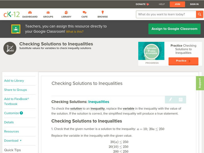 Ck 12: Algebra: Checking Solutions to Inequalities