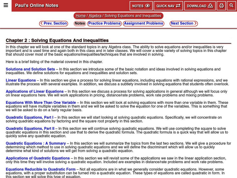 Paul's Online Notes: Algebra: Solving Equations and Inequalities