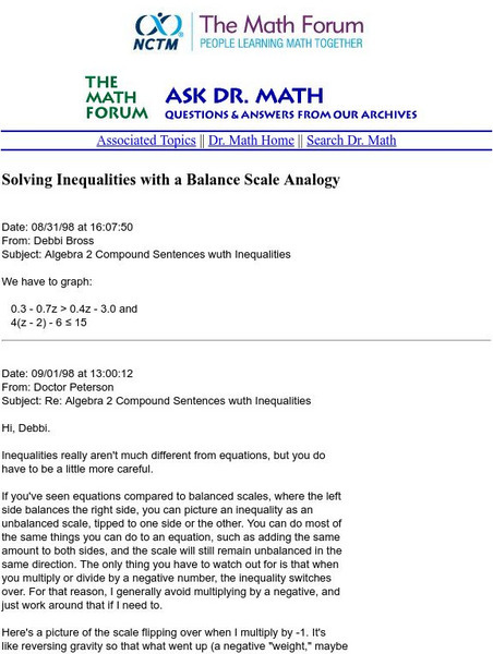The Math Forum: Ask Dr. Math: Solving Inequalities