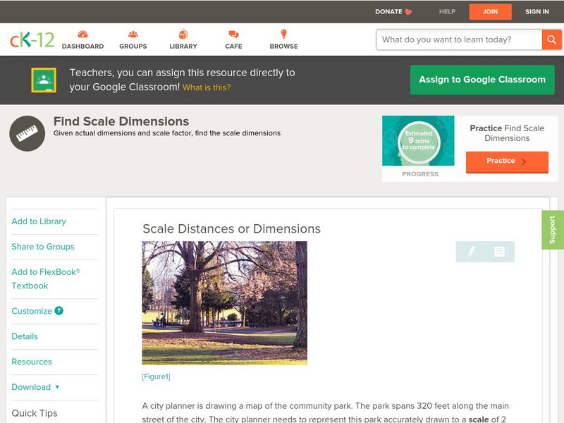 [Free Registration/Login may be required to access all resource tools.] Find scale dimensions using actual measurements and a ratio or proportion.