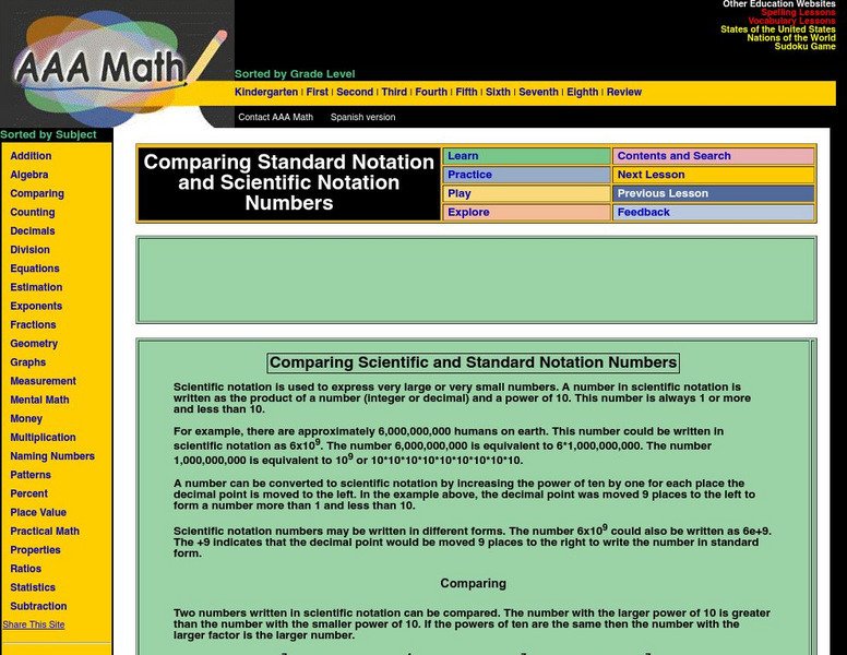 Aaa Math: Comparing Scientific and Standard Notation Numbers