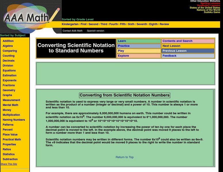 Aaa Math: Converting Scientific Notation to Standard Numbers
