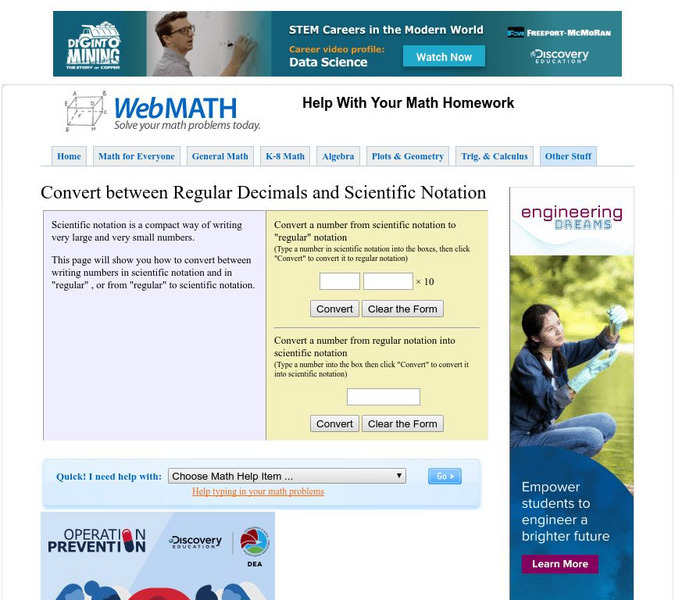 Discovery Education: Web Math: Convert Regular Decimals to Scientific Notation