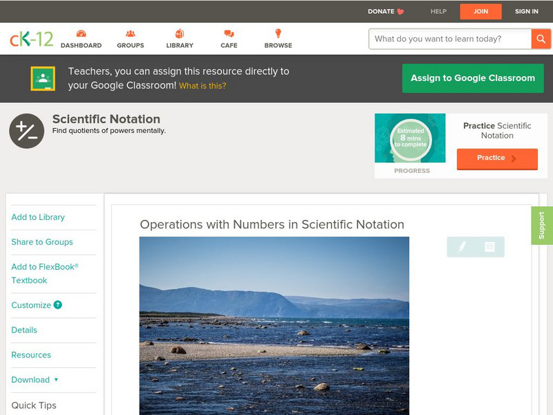Ck 12: Algebra: Operations With Numbers in Scientific Notation