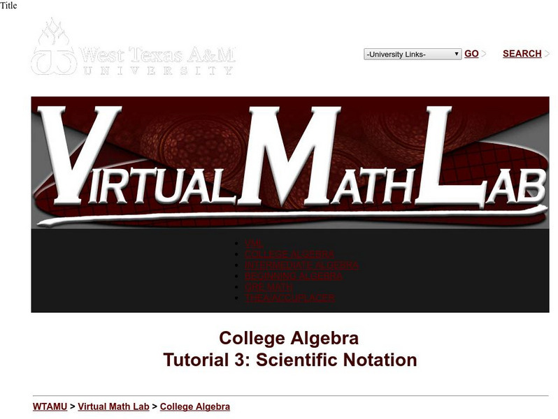 Wtamu Virtual Math Lab: College Algebra: Scientific Notation