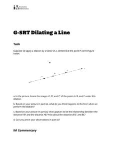 High School geometers verify through experimentation certain properties about dilations. This multi-step problem challenges them to construct examples of dilations to verify specific facts, the final step provides an opportunity to more...