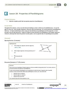 Everyone knows that opposite sides of a parallelogram are congruent, but can you prove it? Challenge pupils to use triangle congruence to prove properties of quadrilaterals. Learners complete formal two-column proofs before moving on to...
