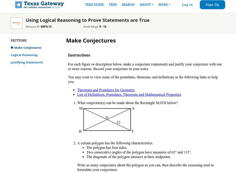 Texas Gateway: Constructing and Justifying Statements About Geometric Figures