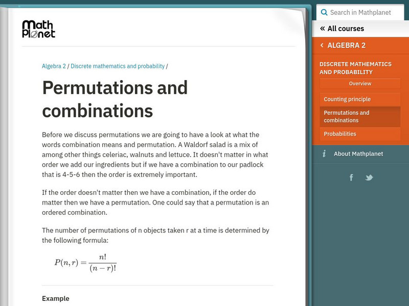 [Free Registration/Login may be required to access all resource tools.] This lesson covers how to calculate the permutations of a subset of items and how to calculate permutations of a set with identical objects.