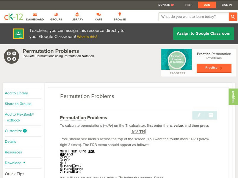 Ck 12: Probability: Permutation Problems Grades 9 10