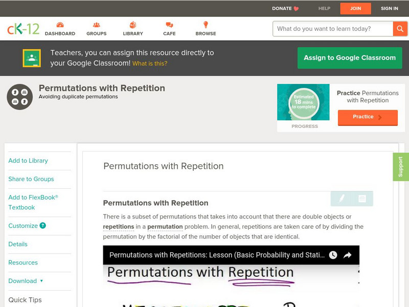 [Free Registration/Login may be required to access all resource tools.] Covers permutations with repetitions.