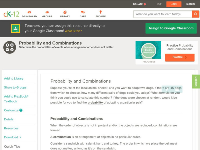 Ck 12: Probability: Probability and Combinations Grades 8 9