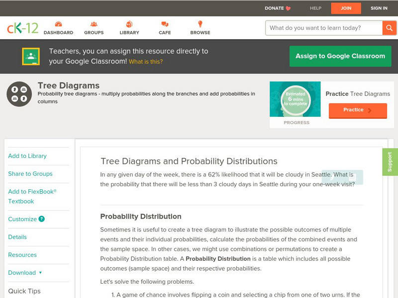 Ck 12: Probability: Tree Diagrams Grades 10 12