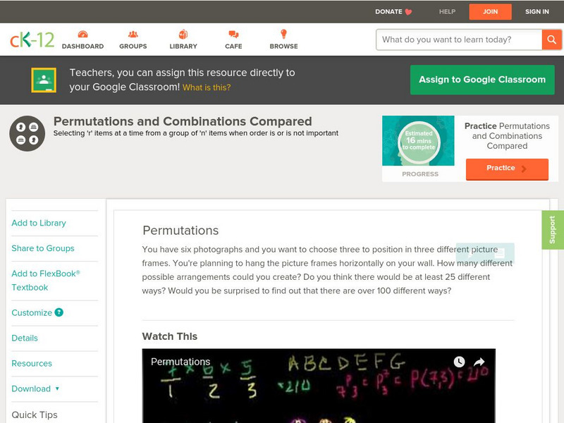 Ck 12: Permutations and Combinations Compared Grades 9 10