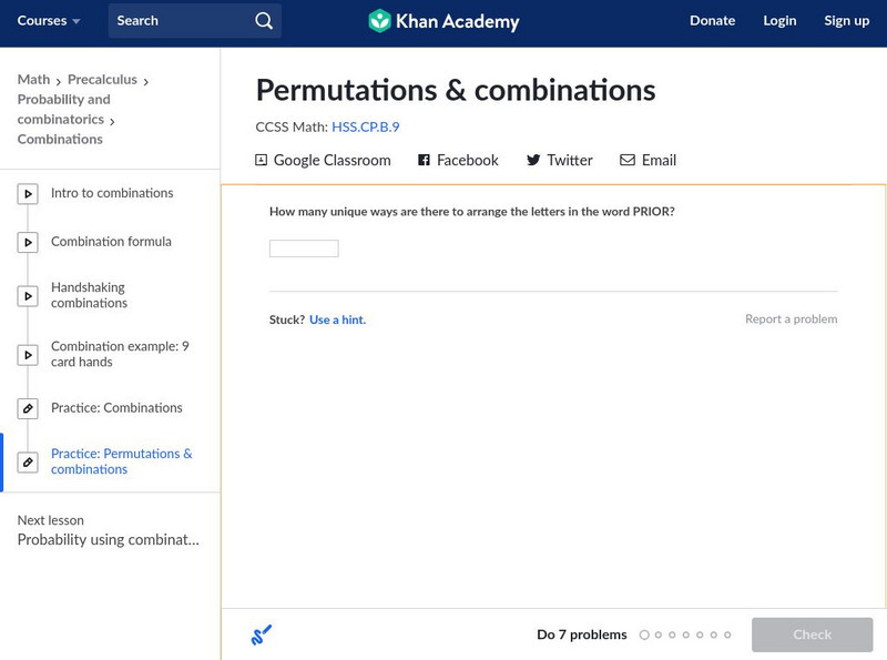 Khan Academy: Probability and Combinatorics: Permutations and Combinations