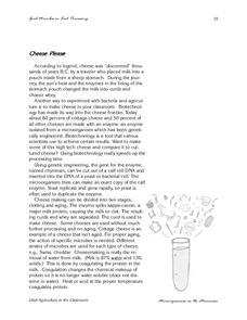 Young scholars make cheese in their classroom! In this cheese lesson plan, students use bacteria and active culture to clot and age cheese that could be edible in the future.