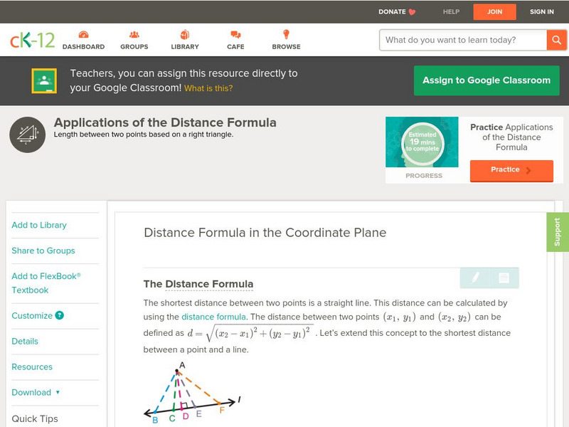 Ck 12: Geometry: Distance Formula in the Coordinate Plane