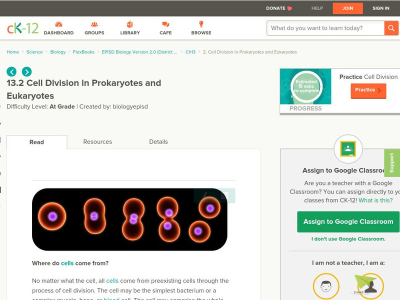 Ck 12: Cell Division in Prokaryotes and Eukaryotes