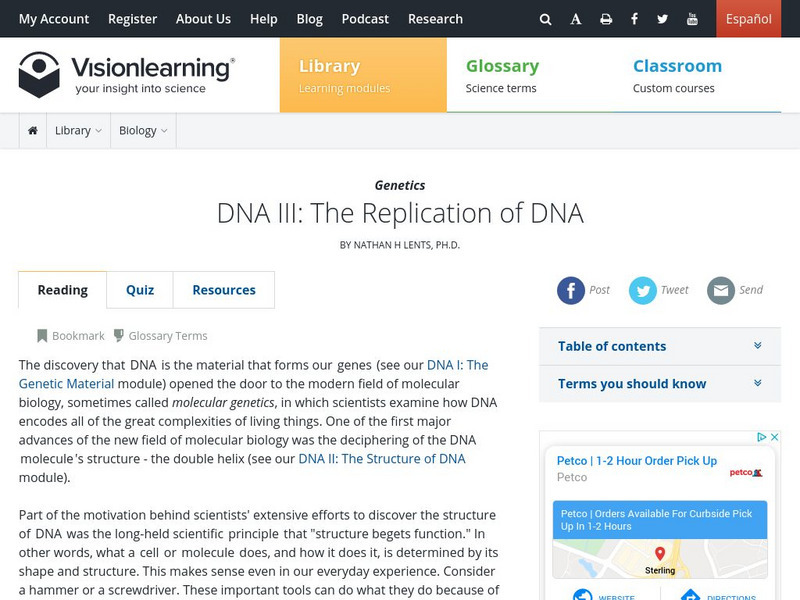 Visionlearning: Biology: Dna Iii: The Replication of Dna