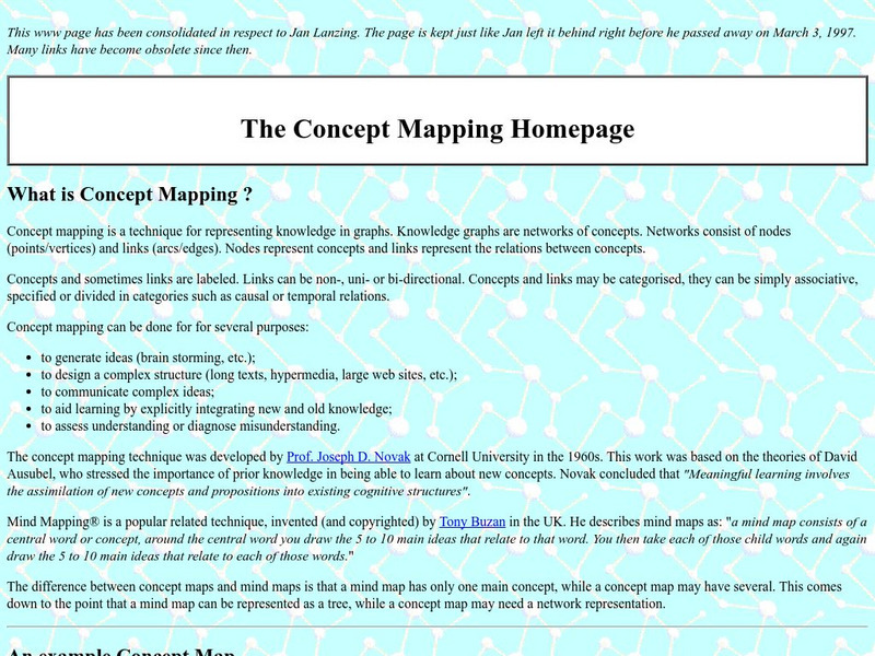 Provides a great example of a concept map, along with information on concept mapping and mind mapping. Mentions the importance of prior knowledge in the integration of new information.
