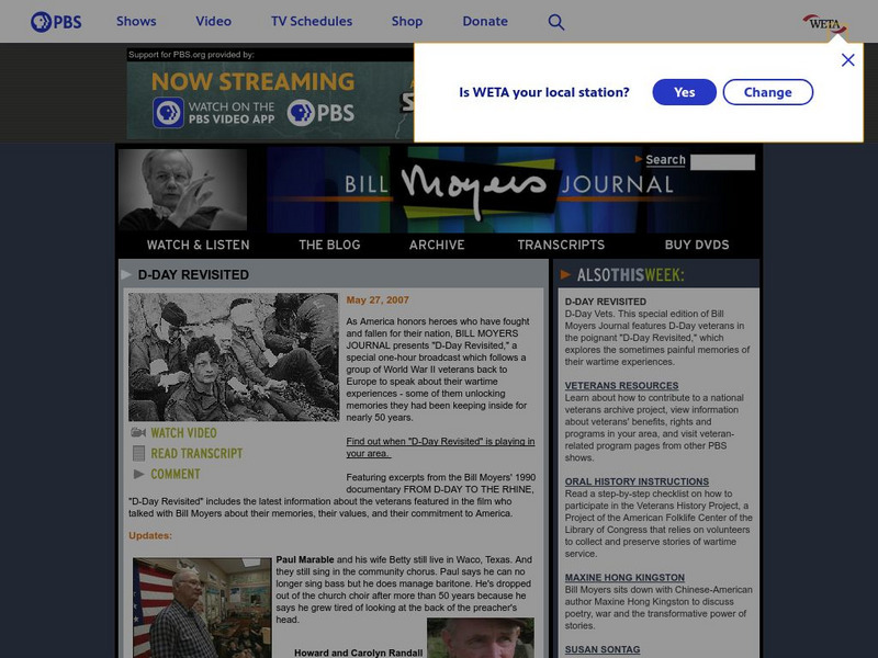Captivating video program detailing the experiences of soldiers who participated in the Normandy invasion in 1944. Streaming video and transcripts available.