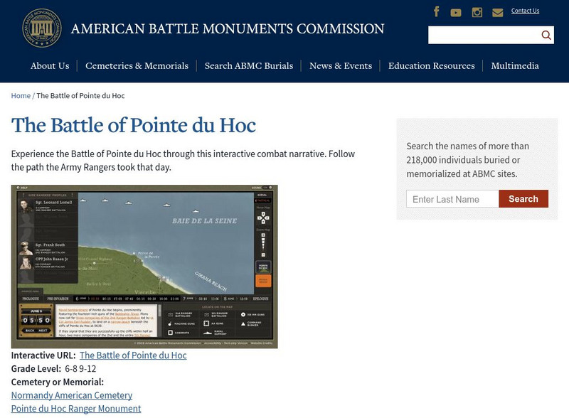 A series of captioned videos and primary source materials, such as aerial photographs, describes and explains how the Allied invasion of Normandy at Pointe du Hoc, midway between the landing zones at the beaches of Omaha and Utah, unfolded.