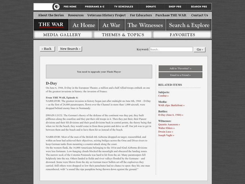 At the online companion site of the PBS documentary series "THE WAR," watch a video documentary of D-Day.