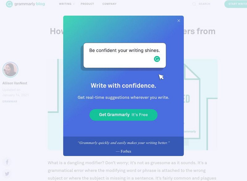 This Grammarly Handbook resource clarifies the topic of dangling modifiers."How to" directions for correcting sentences with dangling modifiers are provided.