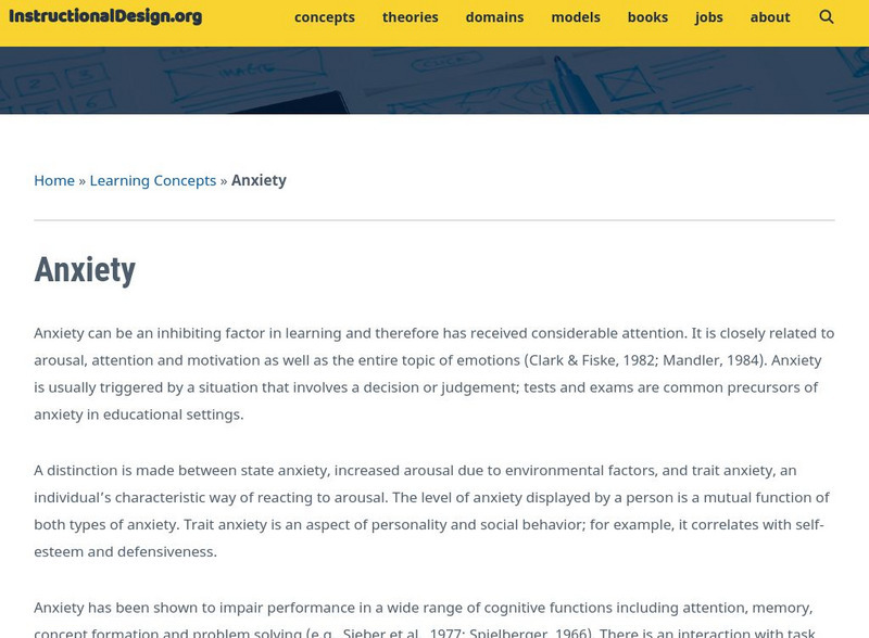 Are you anxious? This site from the George Washington University briefly describes anxiety and offers a few techniques for reducing the feeling of anxiety in the classroom.