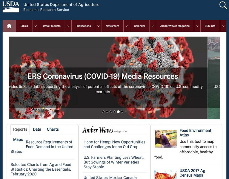 This site has mounds of economic data for students to use as economic research. Data, focusing on agriculture, is compiled for each state. Topics are broken down for easy use and access.