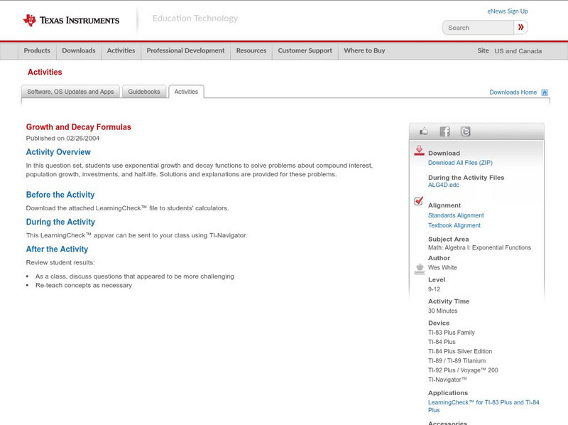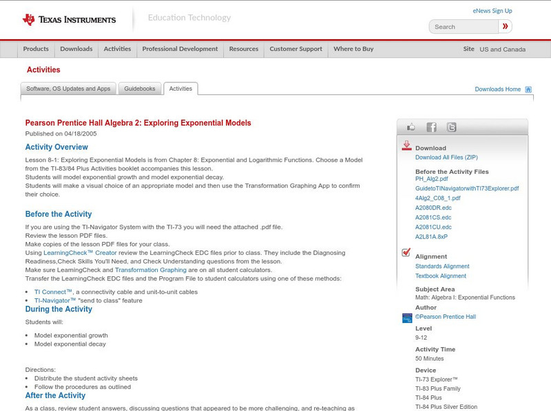 Texas Instruments: Pearson Prentice Hall Algebra 2: Exploring Exponential Models