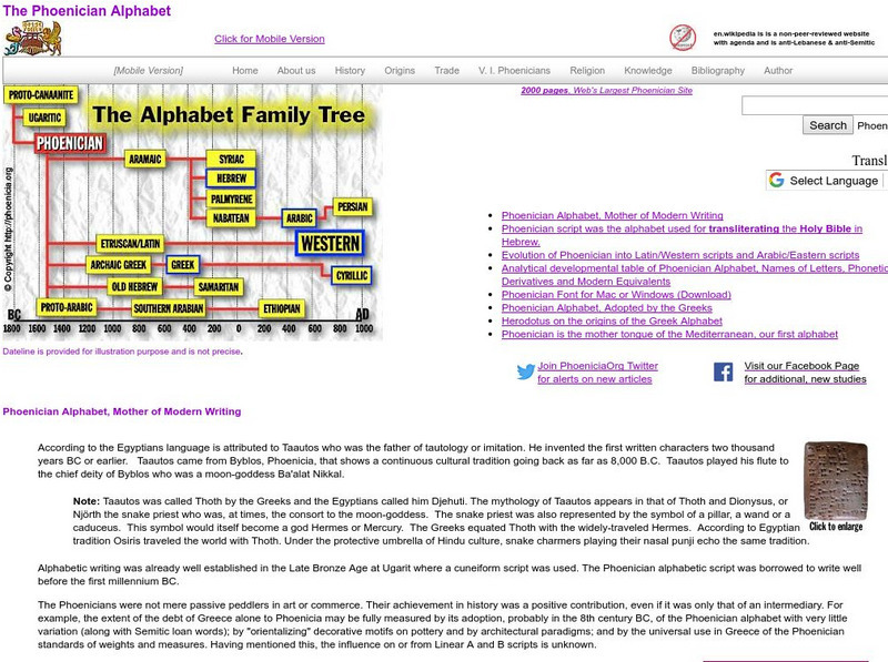 Both fun and informative, this rich site from the Encyclopedia Phoeniciana explains the importance of the Phoenician alphabet for the development of world languages. Download a Phoenician font for yourself!