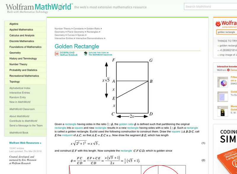 This site contains the definition for the term "Golden Rectangle," complete with detailed pictures, charts, and explanations.