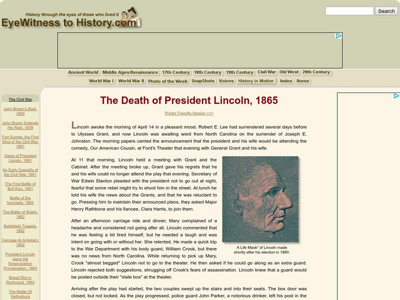 Eyewitness to History: The Death of President Lincoln, 1865