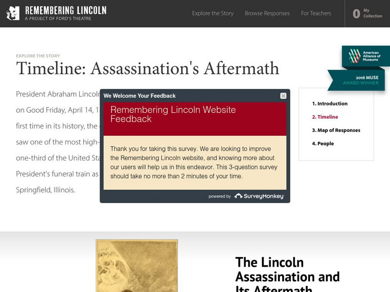 Follow the chronology of events after Lincoln's assassination using this interactive timeline. The timeline begins the night Lincoln was killed and ends with the execution of conspirators. Included are photographs, newspaper columns,...