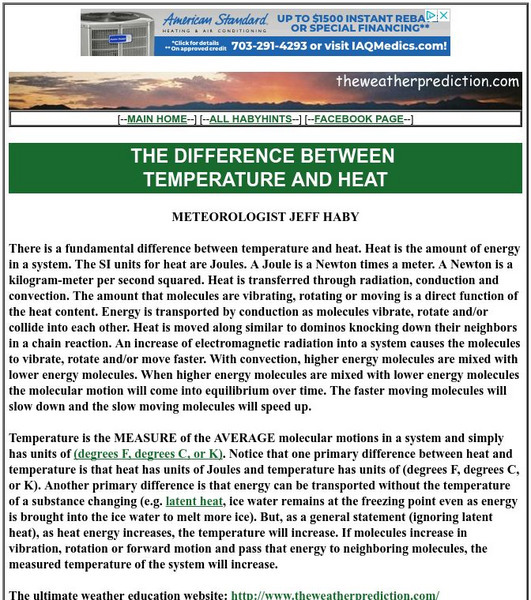 The "Grand Site of Weather Analysis and Forecasting Education," explains how heat and temperature are different from each other.