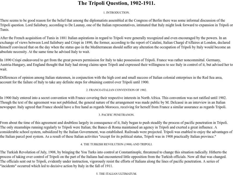 Brief, but informative historical background on the events and influences that lead to the Italian invasion of Tripoli in 1911.