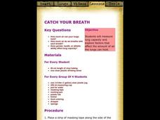 Learners demonstrate how to use math skills to measure their lung capacity. In this human biology lesson plan, students use a clear plastic container, measuring cup and rubber balloons to demonstrate how the lungs work. Learners estimate...