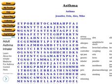 In this health worksheet, students find the words that are related to the respiratory illness of asthma and the answers are found by clicking on the button at the bottom of the page.