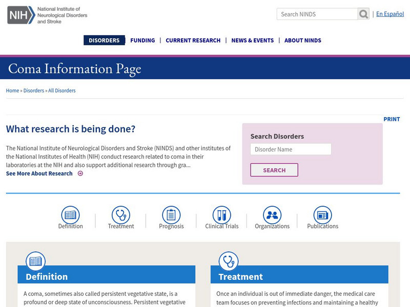 Loads of answers to just about any question you may have about comas. This site discusses what coma is, whether there is treatment, what the prognosis might be like, research on comas, and more.