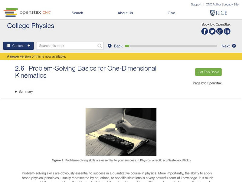 Open Stax: Problem Solving Basics for One Dimensional Kinematics