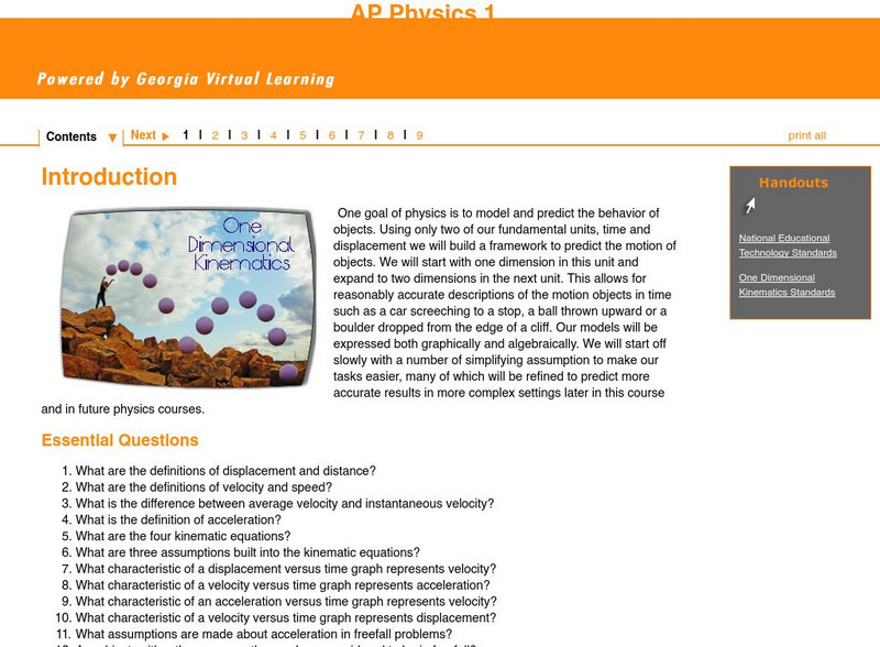 Ga Virtual Learning: Ap Physics 1: One Dimensional Kinematics