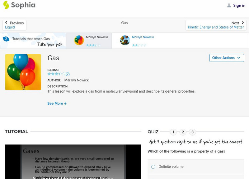 This lesson will explore a gas from a molecular viewpoint and describe its general properties. It is 1 of 2 in the series titled "Gas."