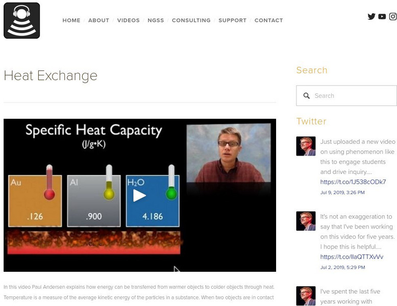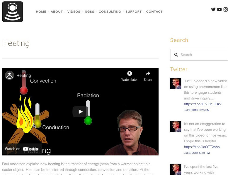 In the following video Paul Andersen explains how heating is the transfer of energy (heat) from a warmer object to a cooler object. Heat can be transferred through conduction, convection and radiation. At the microscopic level conduction...