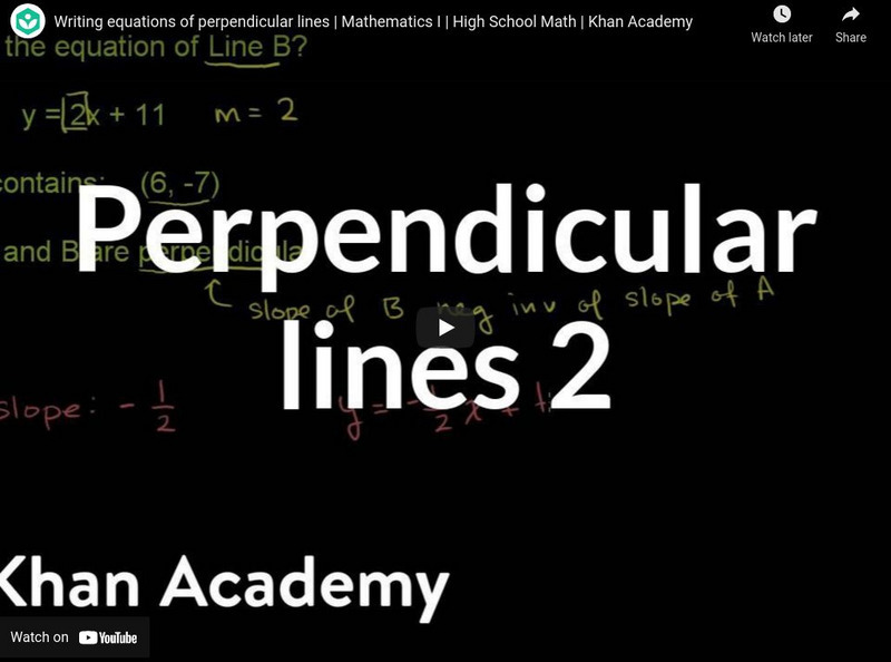 Khan Academy: Algebra I Worked Examples: Perpendicular Lines 2